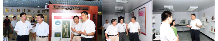Ling Weixian directly visited the Culture House after getting off the car, and presented high praise to Meifubao and Franic of Huanya, confirmed the enterprise cultural spirit of “Diligent, Sincere and Persistent”; In the Huanya Beauty & Cosmetics Museum, Ling Weixian visited the articles with high interest and expressed the praise now and then. E said: “make the past serve the present, promote the development of the industry and the enterprise with museum”. In the visitation corridor of the production factor, when seeing the splendid samples through the glass window, Ling Weixian said: it was the good method to be responsible for product quality. In the Research Institute, Ling Weixian was attracted by dozens of natural plants including saffron, snow lotus, rose, Jasminum officinale and papaya, and said that Huanya was developing so many and so good products with such precious vegetal materials, suggested us to move this part to the showroom on 1/F. At 11:00, Ling Weixian visited the Huanya Research Institute under high temperature, facing the regular and unique 5-floor building, Ling Weixian looked excited, he said: this was the beautiful building in Guangzhou Science Town. He visited the lobby decoration, and then the fifth floor for decorating various research rooms and product R&D rooms, and said to Huanya staffs that enterprise should emphasize in R&D to make further advances.