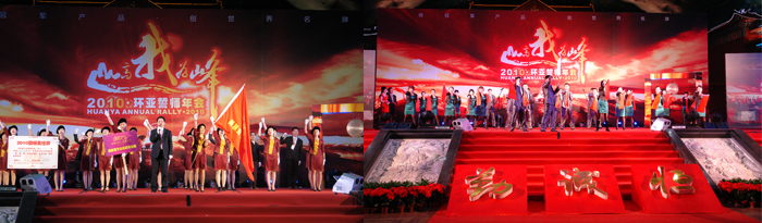 The pledge of all distributors team was the most important procedure of this annual. They were high-spirited, and showed their own styles under the leadership of the chief, they were vigorous and enthusiastic, and expressed their sincere heart to Huanya and ambition of completing the sales target. Chairman Hu awarded the red flag for every team, and signed the assignment of completion sales target with the chief, the 2010 target must be completed, and everyone also believed to over fulfill the assignment. At last, the chief of the team knocked the gong, and the sound is clear and sonorous, which moved the heart of everyone, and Huanya would be more and more reputed in 2010.