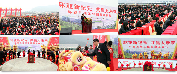 It is known that the Industrial Park was prepared for construction in October 2011 with total investment reaching USD57.50 million and an area of 62548m2, 40000m2 of color makeup plant, 80,000m2 of hair care products plant, and is specialized in producing such daily chemical products as hair care products and color makeup. The project is estimated to complete construction in 2013, and will achieve three leaps of Guangzhou Huanya Cosmetics Technology Co., Ltd. in terms of space layout: first (Phase I Engineering), construct Huanya Technology Industrial Park, second (Phase II Engineering), construct Huanya Research Institute, and the third (Phase III Engineering), construct Huanya third plant, Huanya products will cover all skin care and beauty care fields. The foundation laying of Phase III Industrial Park symbolizes that Huanya has entered into a brand new development phase.